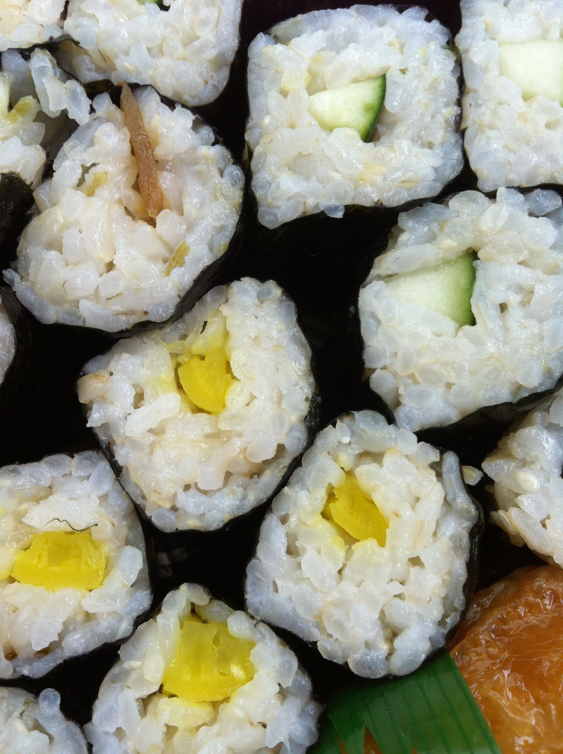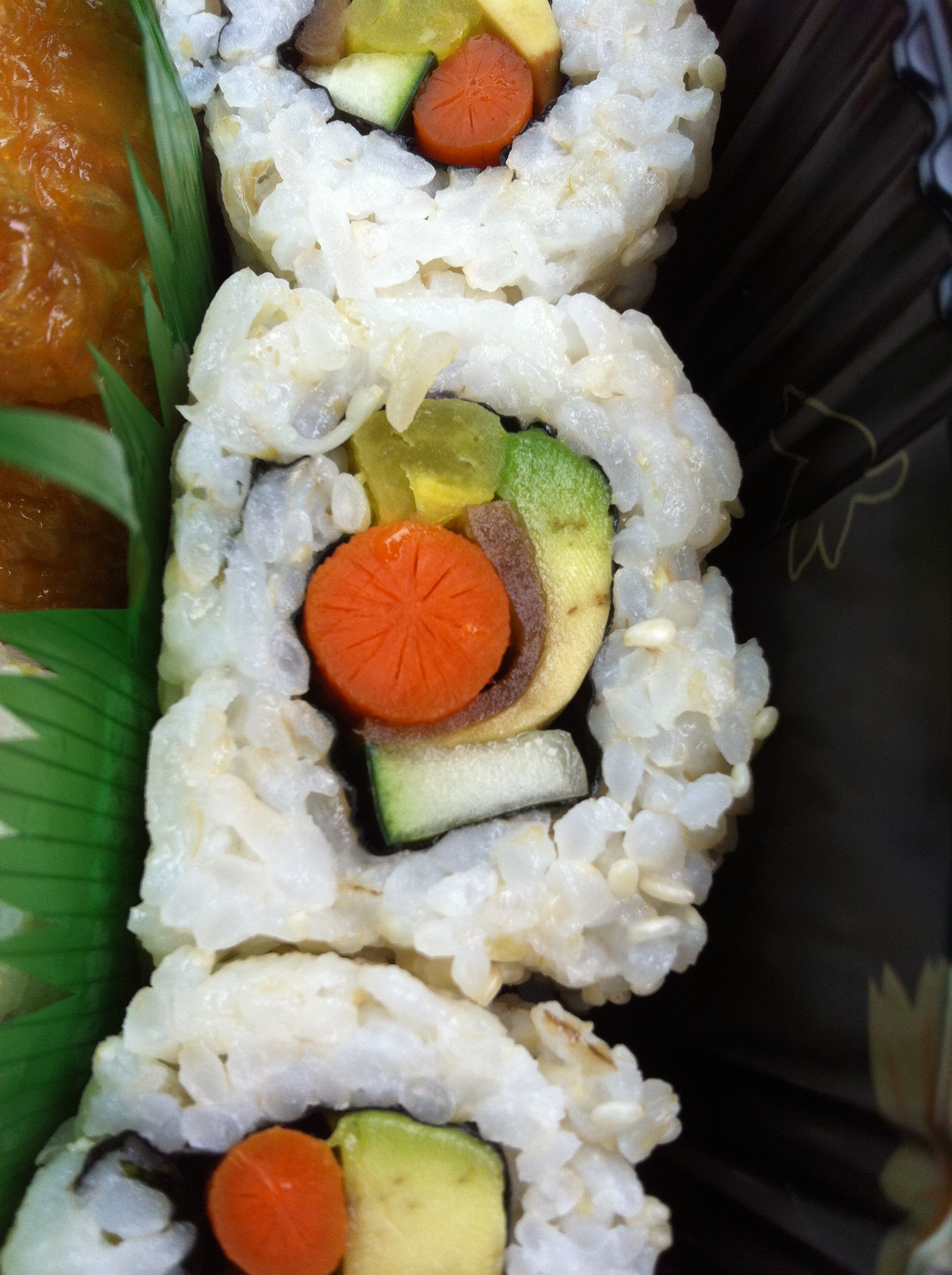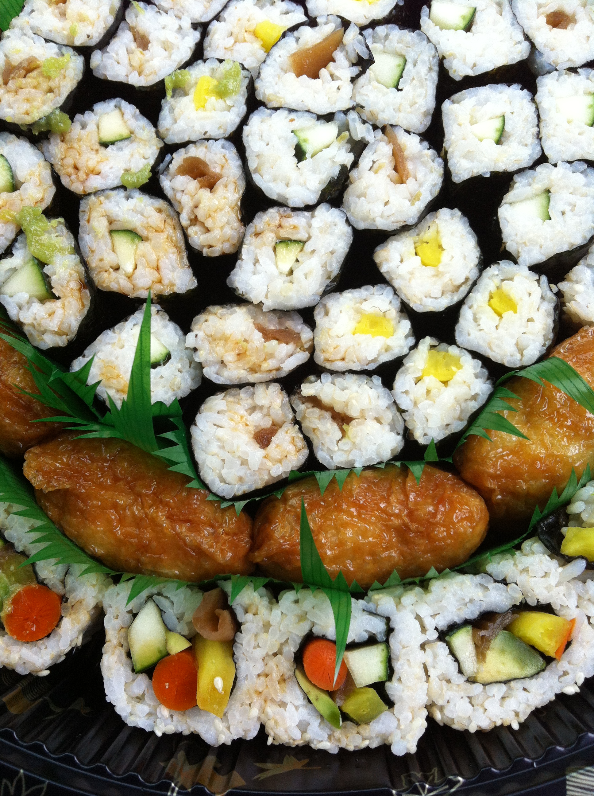 Local Boy Sushi it’s kind of a harder place to find as it’s basically a hole in the wall on the first floor of a big Green shopping center in Kaneohe. Their menu may seem small but they’re really good at making it fast and it taste really good. Just be patient because it only one or two people working there but it’s well worth the wait and the price. They even had sushi for vegetarians. My sister and I are vegetarians and I know you’re probably saying vegetarians eat sushi? Do they even make vegetarian sushi? Well the answer is yes they do. And I think that her eyes were a little bit bigger than our stomachs when we order their veggie platter and which comes with more than 80 pieces of sushi for around $25. I think the price may have went up to $30 but it’s still an unbelievable price for that much sushi.