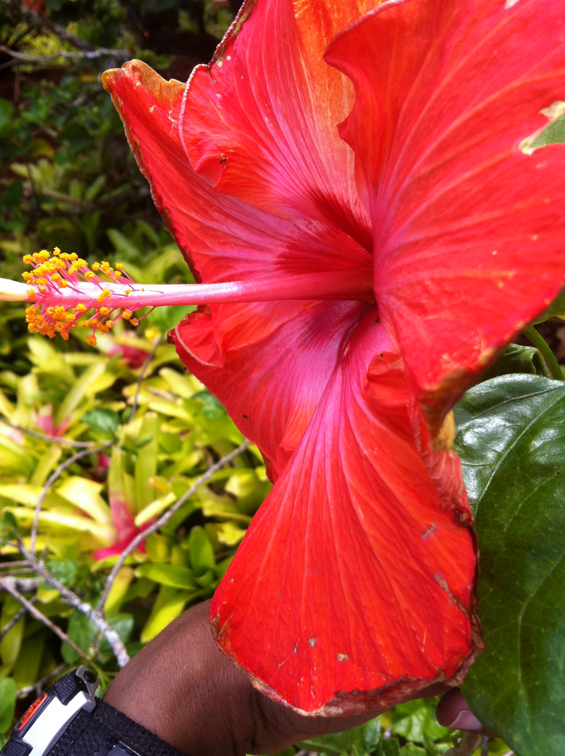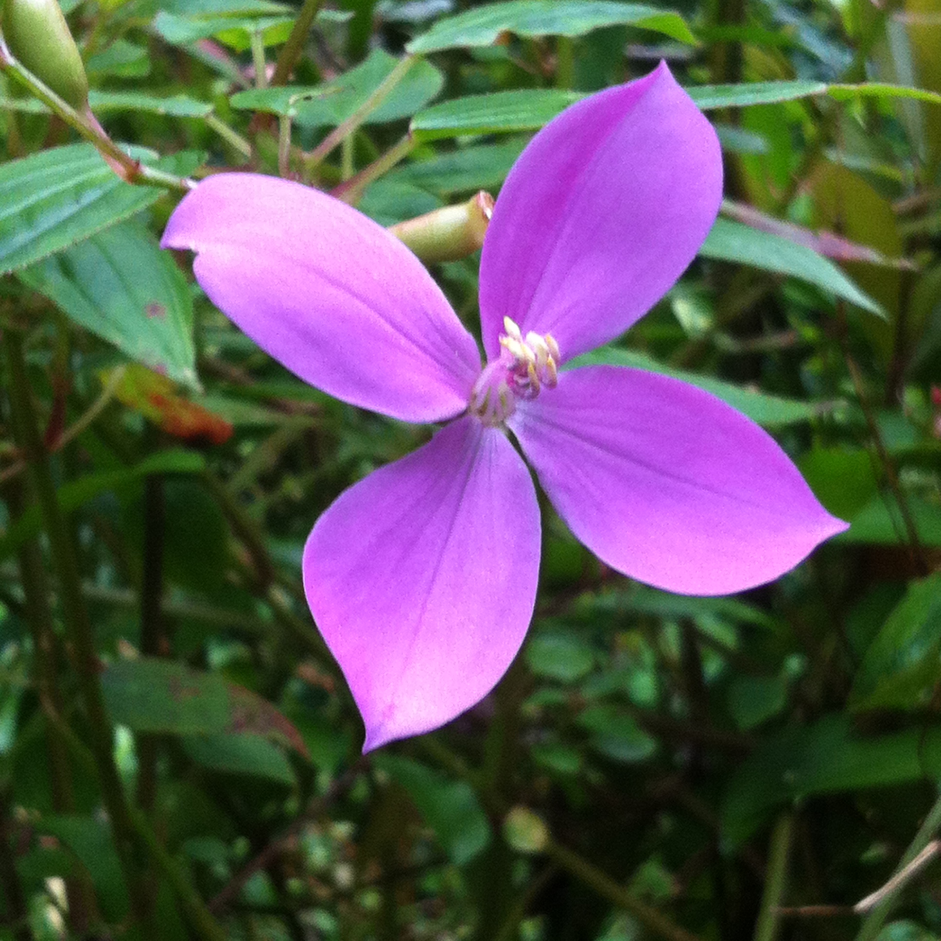 The majority of the hike is uphill. This is why I mention you should check to see whether or not it rained the night or day before because the trail might be somewhat difficult for people who don’t hike often. With that said you obviously want to wear appropriate footwear as the ground is very uneven and it will be muddy in places. 494 Also, the terrain is like a jungle and it gets pretty muggy, so only bring what you need if you’re going to do this hike and not a whole bunch of baggage that might weigh you down and cause you to sweat more. I’m not sure how popular this trail is but we had a pretty quiet hike the entire time and we definitely got to work out. If you do happen to go on a busy day the parking lot does fill up pretty quickly. So, the earlier you go the better …mainly because it’s cooler and there’s less mosquitoes. The mosquitoes were a real trip! I will say that we got bit up by the mosquitoes on the trail so please bring a reasonable level of insect repellent. This trail is nice because it also lets you see a lot of the native flowers of Hawaii in their natural environment rather than plucked off and put on a lei or dangling in someone’s hair as a hair accessory.