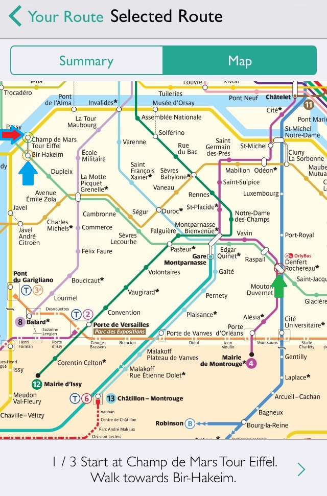 I’ve included some screenshots from the app of an example if you’re going from the Eiffel Tower to the Catacombs. The map that is shown below is the same map you’ll see in the train station if you don’t have the app.