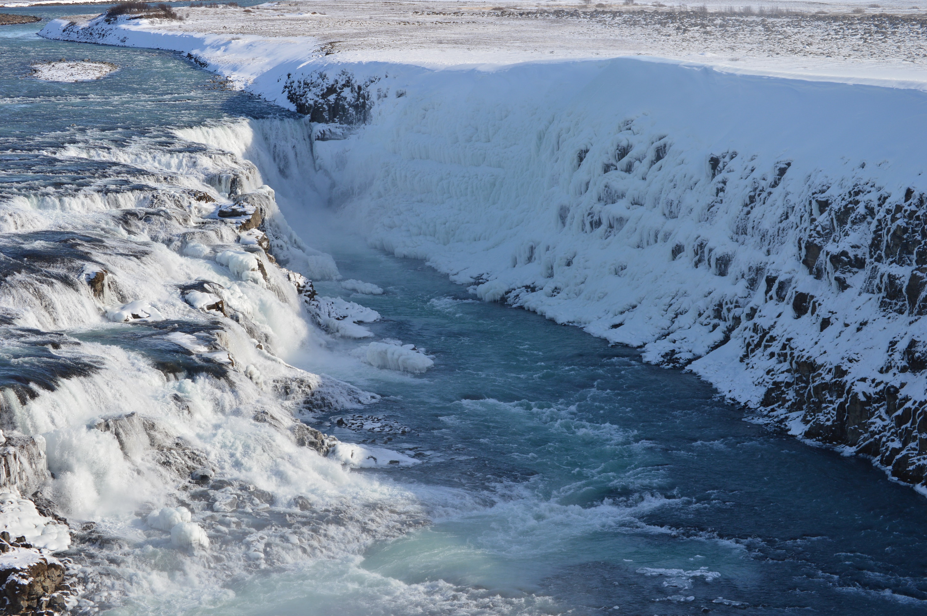 Gullfoss is one of the more popular waterfalls to see, so you’ll be sure to see loads of tour buses and people scattered about on the grounds. The falls themselves are a short walk through the gift shop and down a small trail. Of course, watch your step as you navigate the trail to the bottom as it’s uneven in places. I really think that Gullfoss is marvelous regardless of which season you go in. It’s so massive that you’re sure to feel the mist of the hundreds of thousands of gallons of water that rush over the shelves of the falls. We went toward the end of the winter so it was still cold and icy. I’ve seen photos of Gullfoss in the spring/summer, so if you like flowers and seeing greenery, you may want to wait until then to see the falls. Plus, you will be less apt to freeze your tater tots off. Be sure to walk down to the lower platform which is closer to the actual falls if you can make it. Either way, you’ll get a great view and at least one good photo.