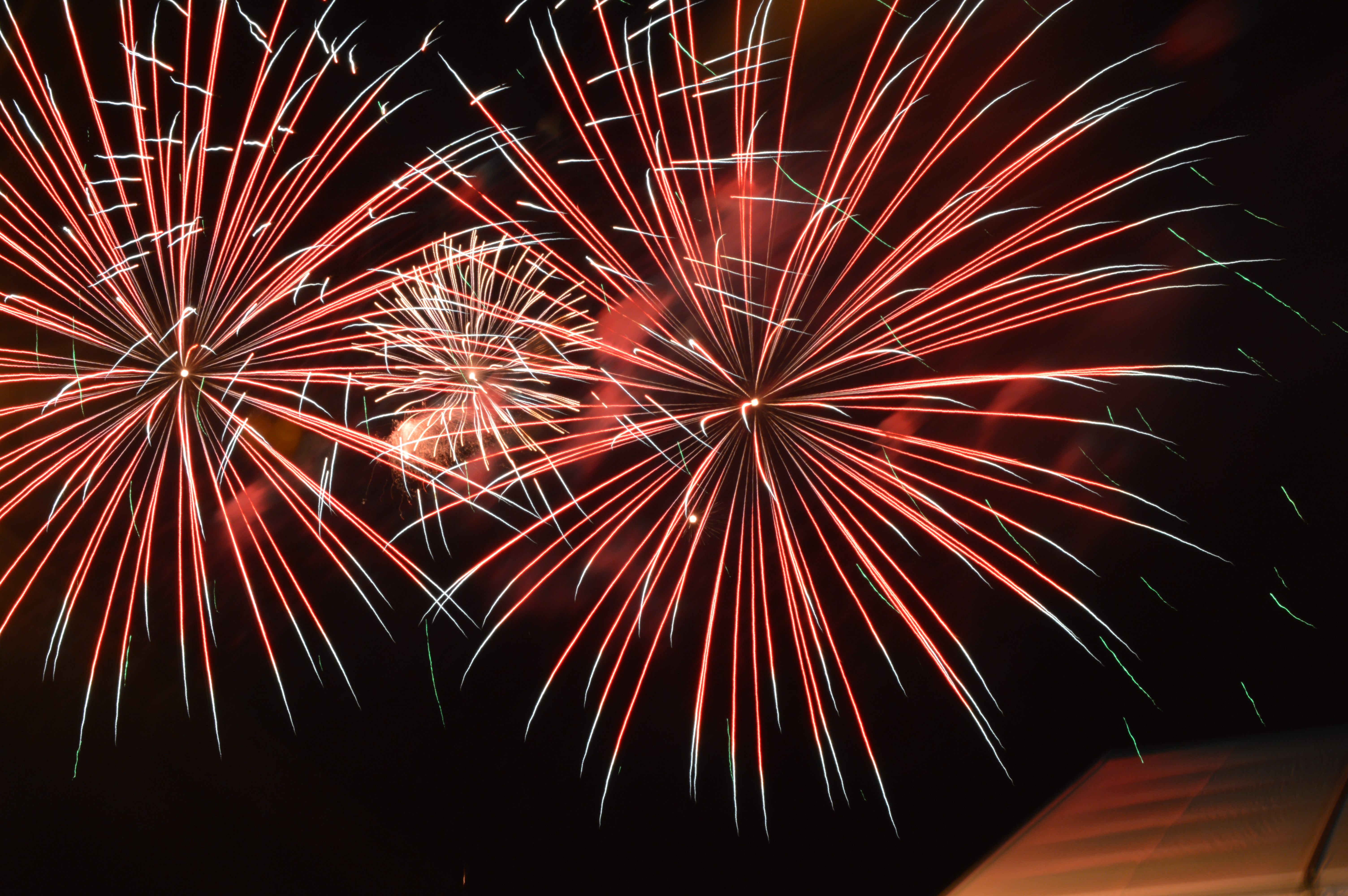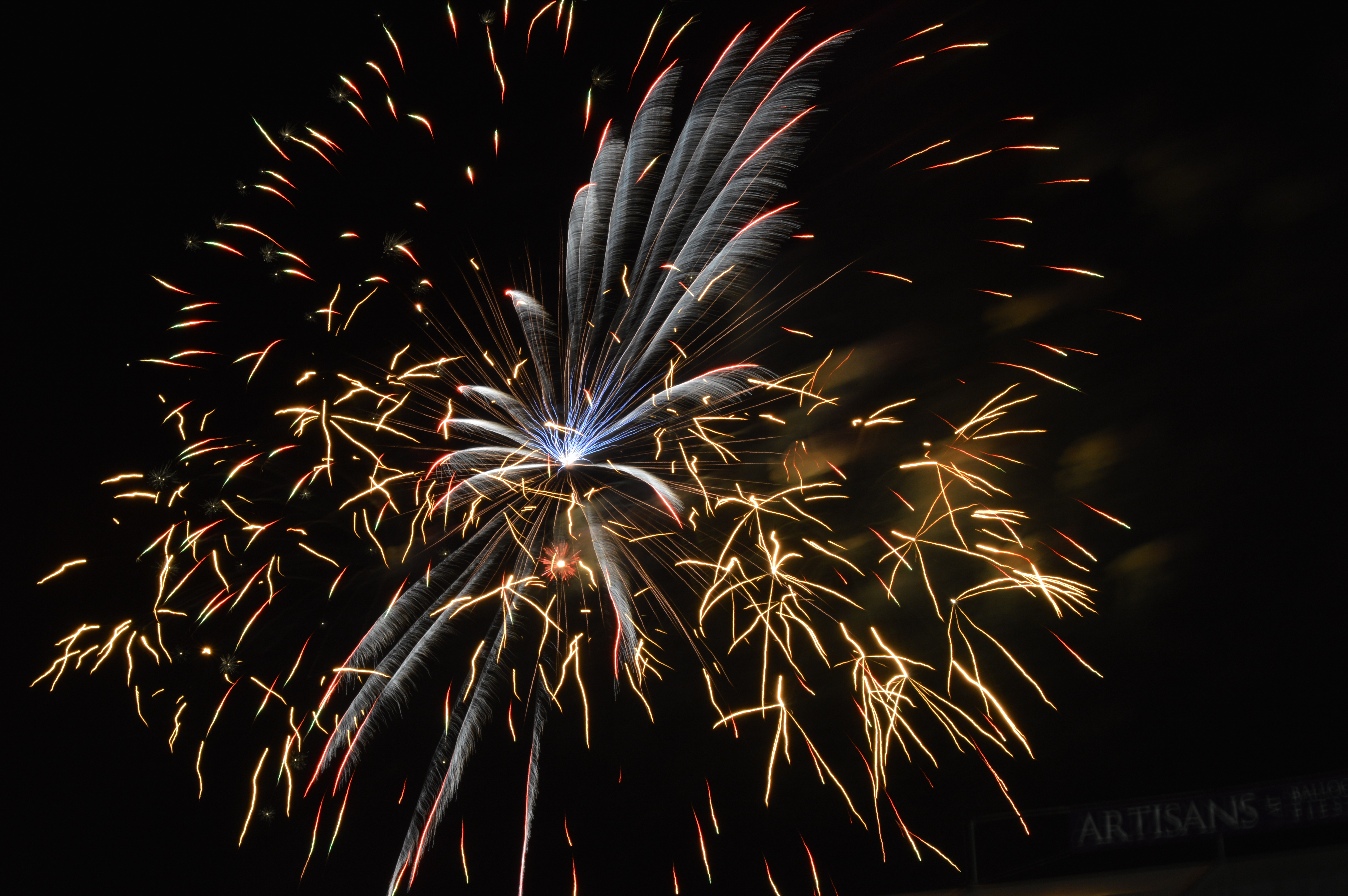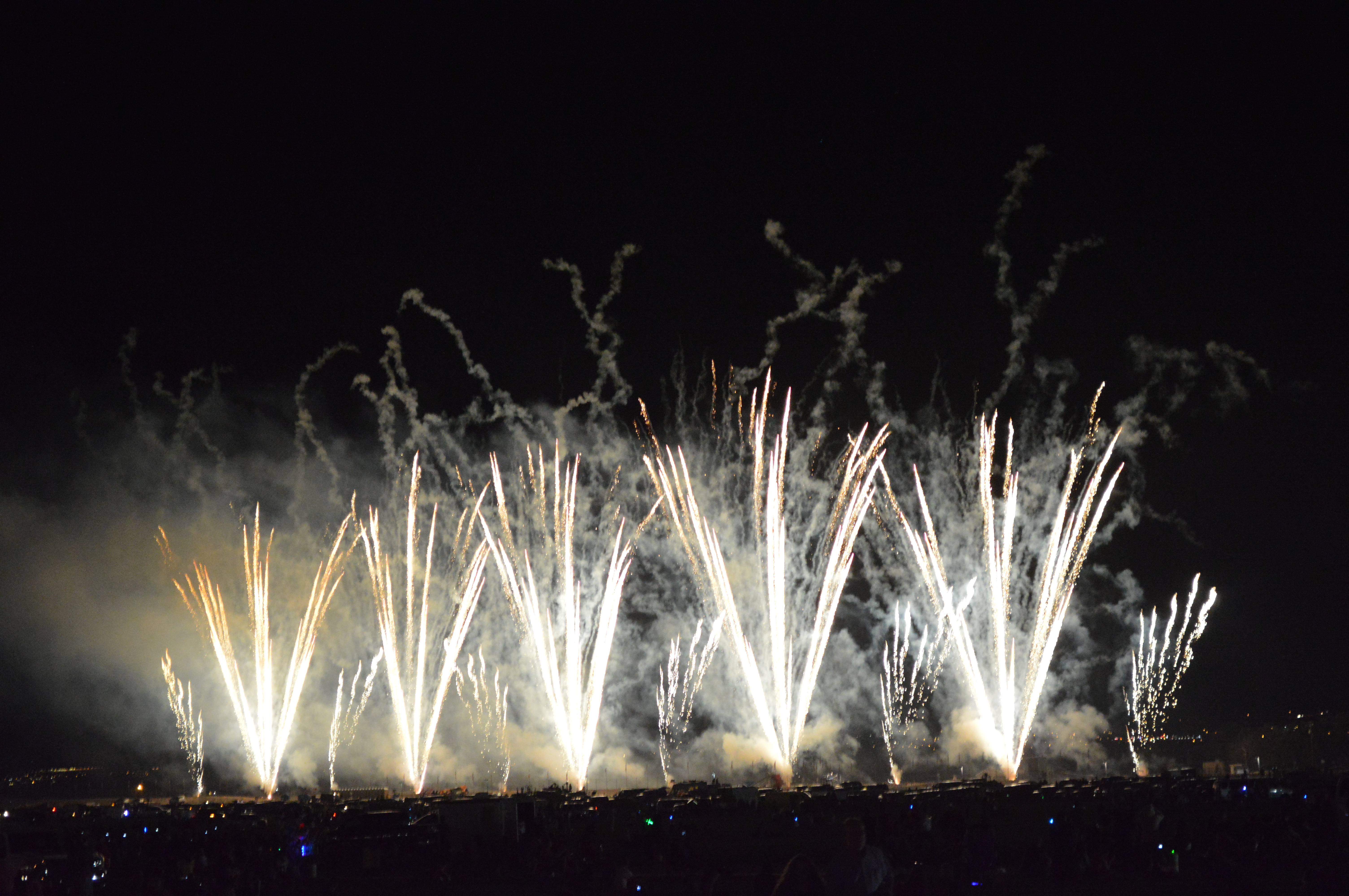 Then the darkness comes and an announcer provides general disclaimers and safety information over the loudspeakers and then starts a 10-second countdown. As the announcer gets closer to the number one, people start to get up from their blankets and the tension mounts. Then 5-4-3-2-1 and a flurry of fire flashes across the field in quick succession.
